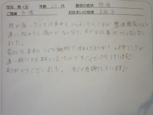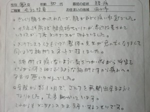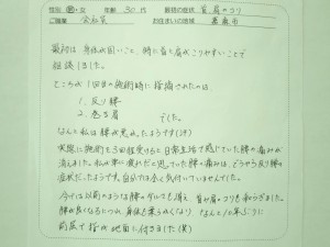 初めに見させて頂いた時はかなり状態が悪かったのですが、早期改善に繋がったのは、私がお伝えしたセルフケアをしっかり実施して頂いた事がポイントだったと思われます。